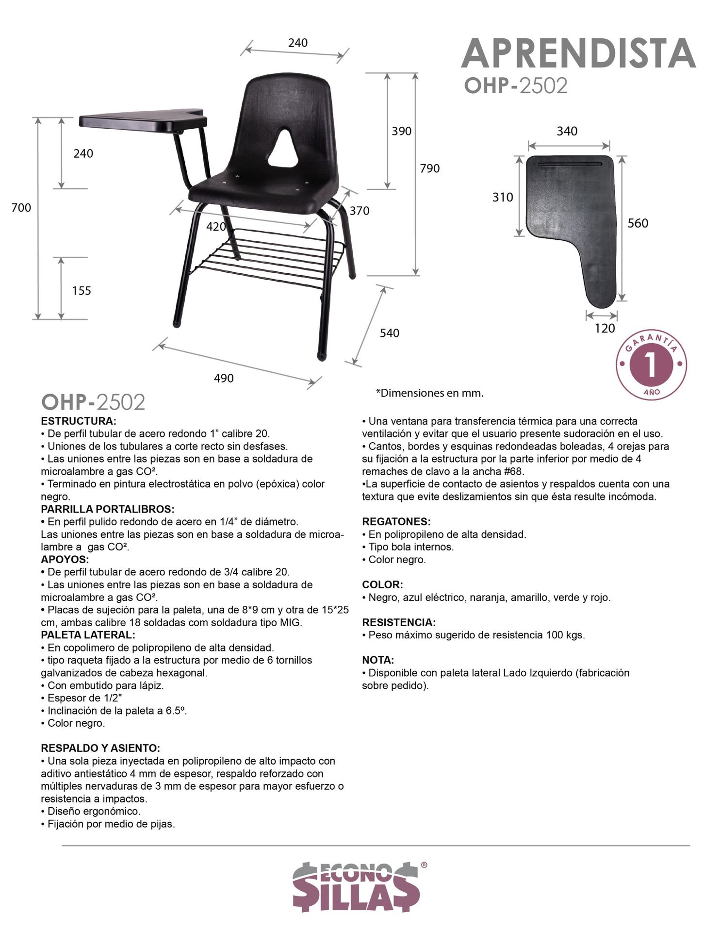 NOTA: disponible con paleta lateral lado izquierdo sobre pedido.