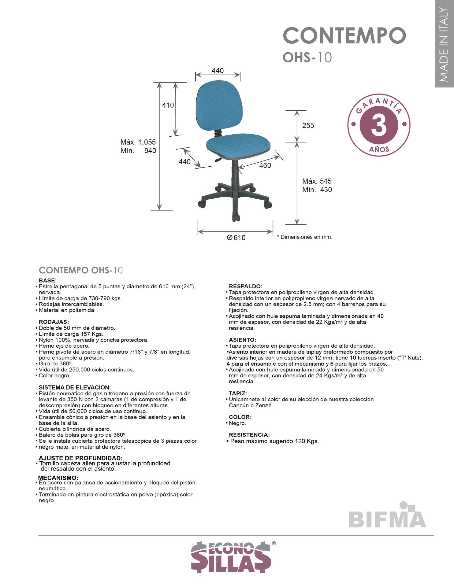 elevación: por medio de pistón neumático que permite ajustar la altura del asiento.