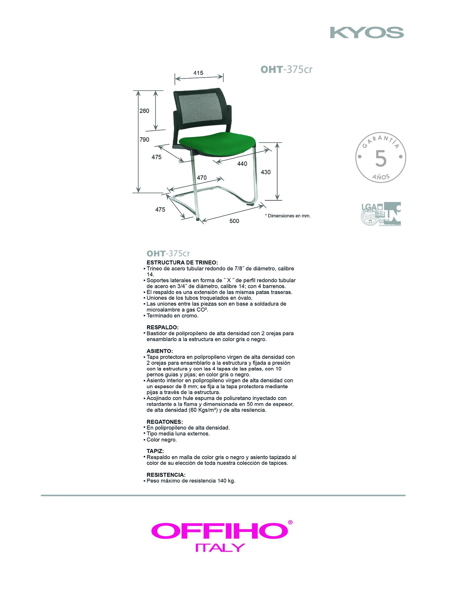 asiento: hule espuma de poliuretano inyectado flexible con densidad de 60 kgs/m3 con retardante a la flama y alta resiliencia.