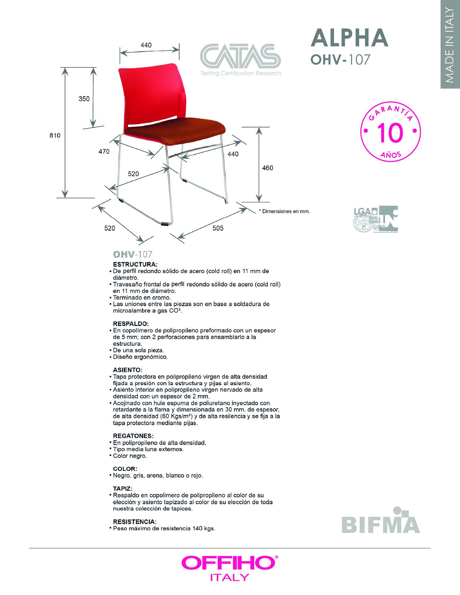 asiento: hule espuma de poliuretano inyectado flexible con densidad de 60 kgs/m3 con retardante a la flama y alta resiliencia.