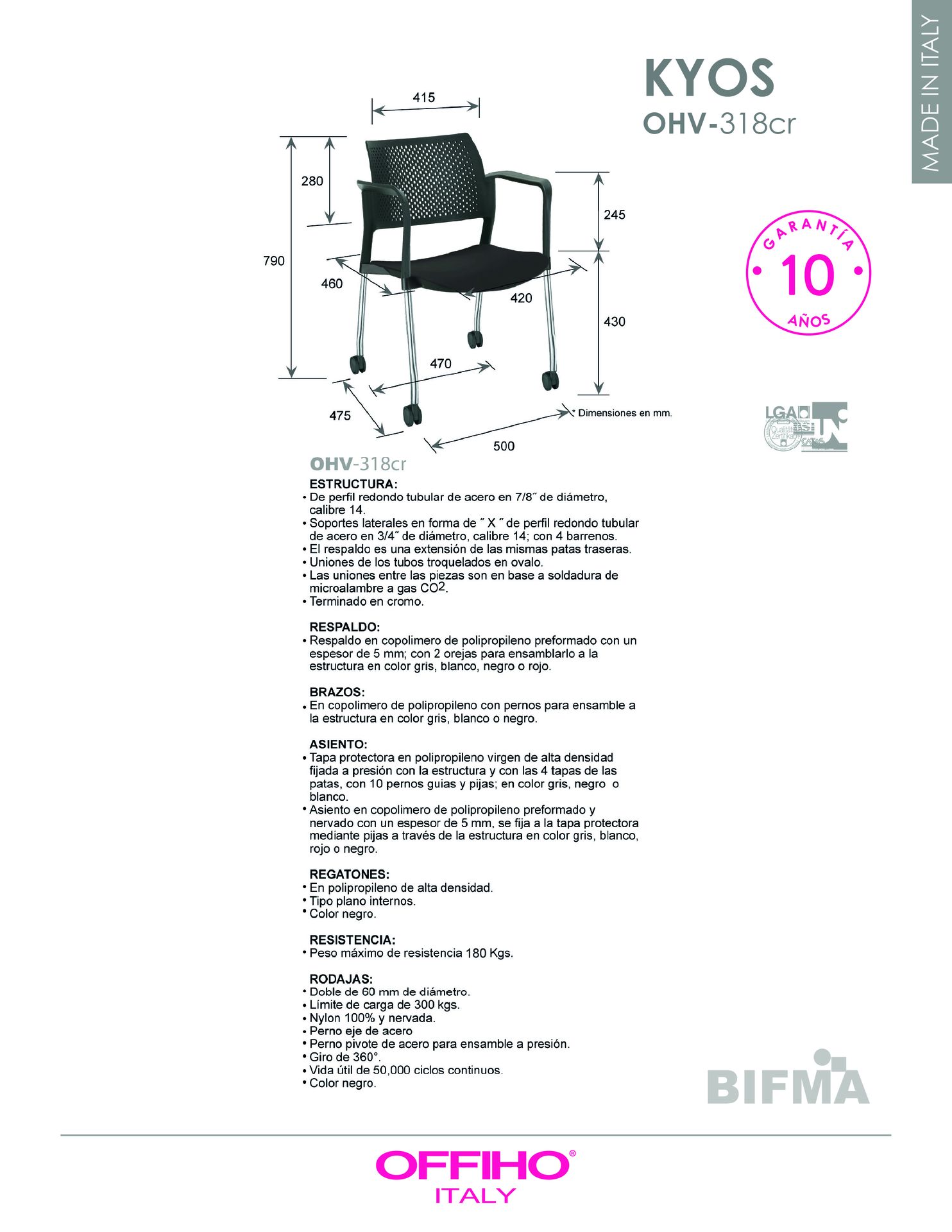 asiento y respaldo: en polipropileno de alta resistencia y duración.