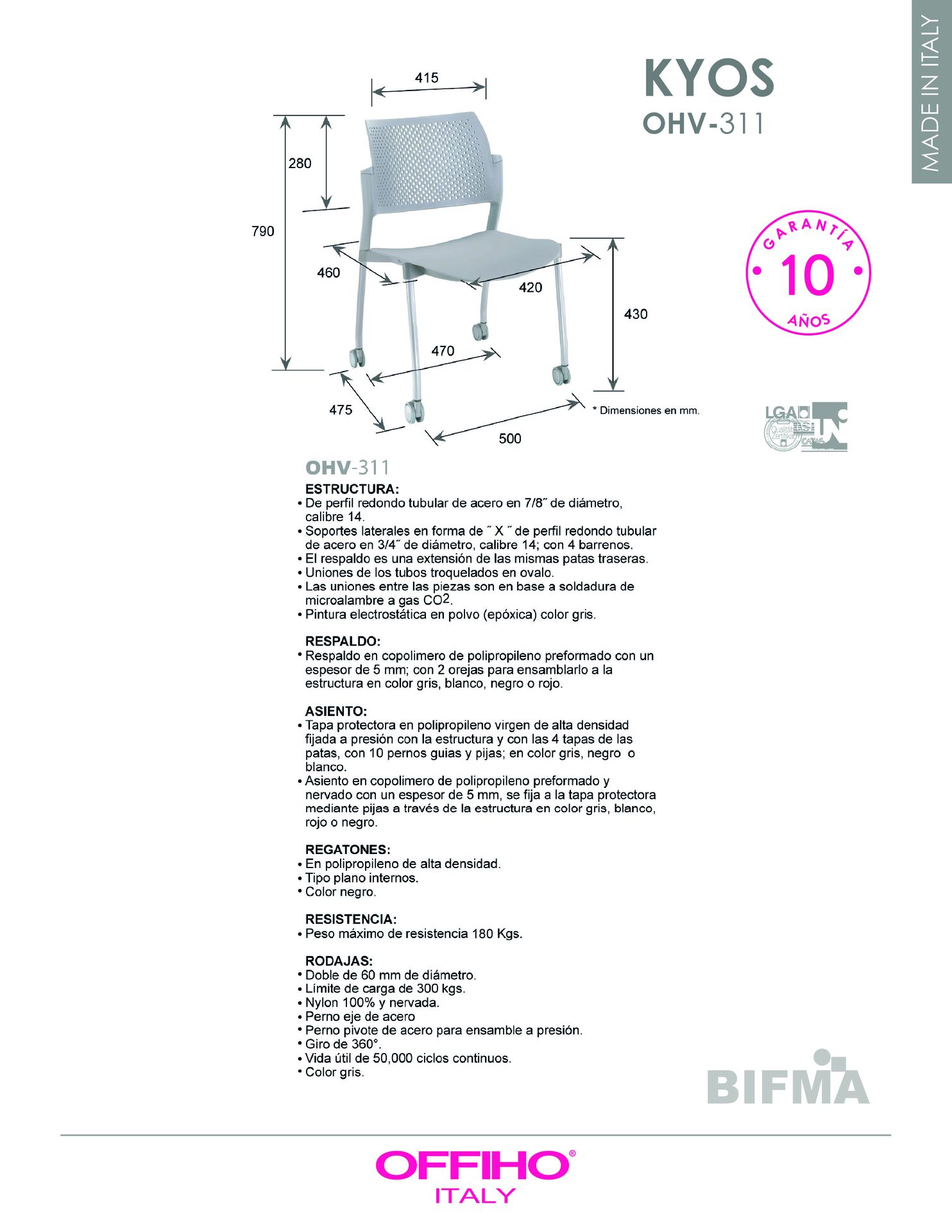 asiento y respaldo: en polipropileno de alta resistencia y duración.