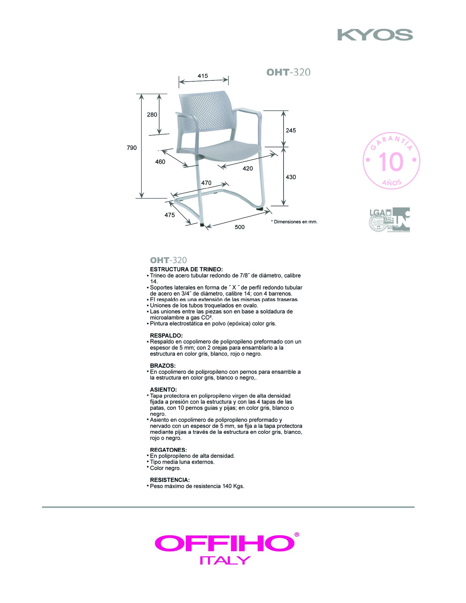 asiento y respaldo: en polipropileno de alta resistencia y duración.