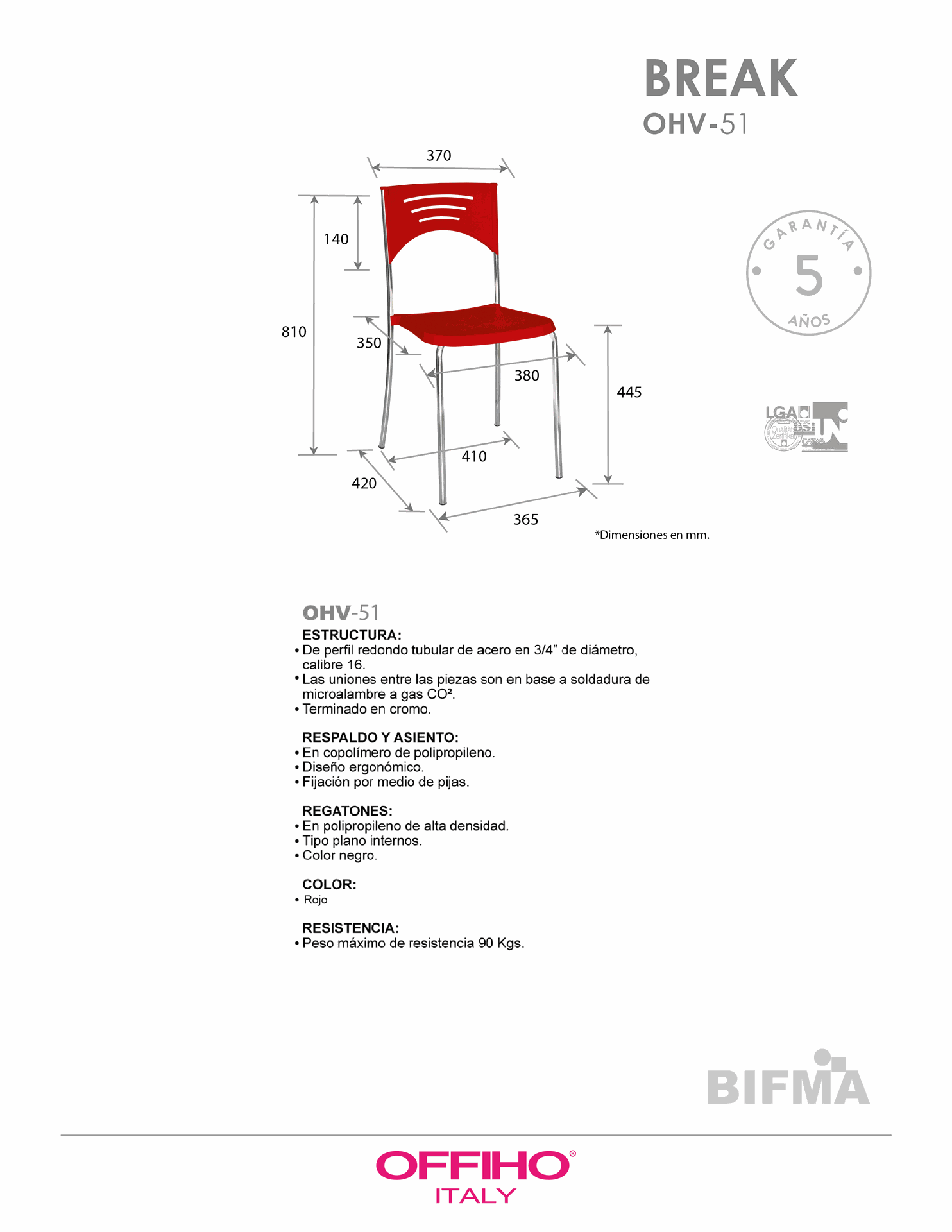 SILLA BREAK POLIPROPILENO EXPUESTO