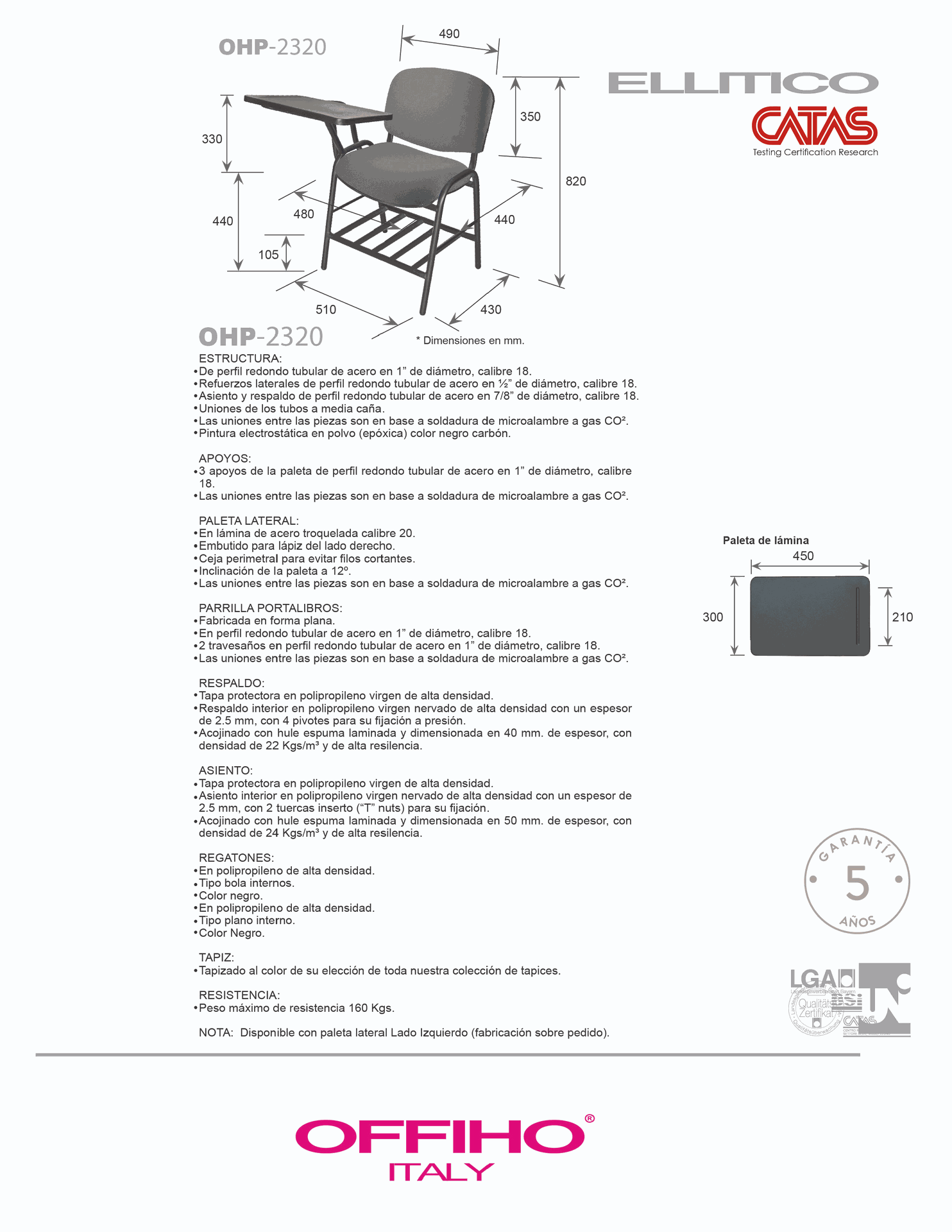 PUPITRE ELLITTICO ASIENTO Y RESPALDO TAPIZADO CON PALETA DE ACERO