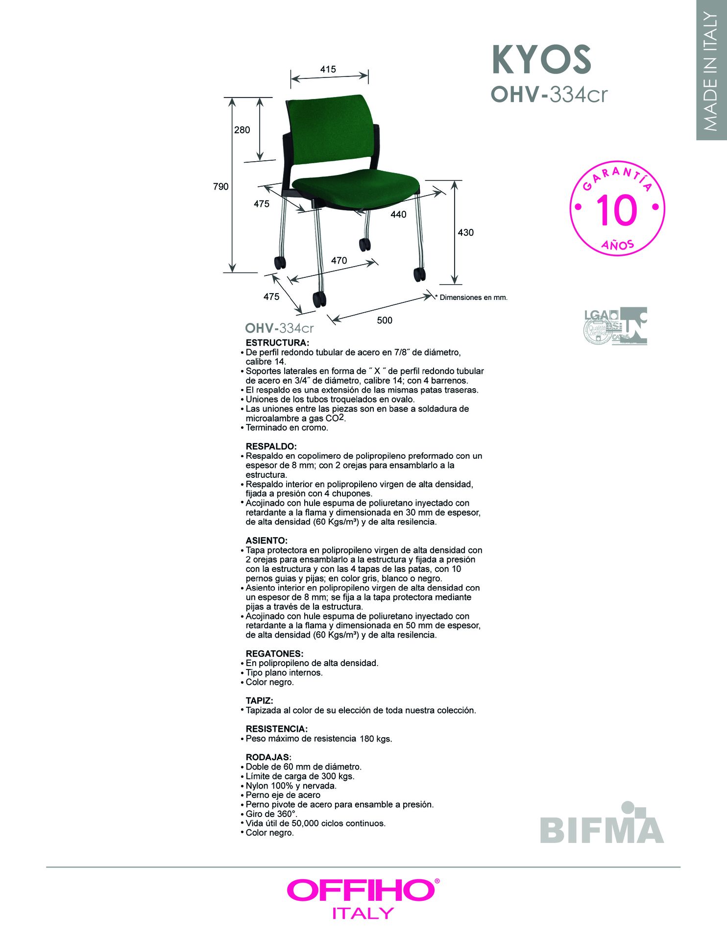 asiento y respaldo: hule espuma de poliuretano inyectado flexible con densidad de 60 kgs/m3 con retardante a la flama y alta resiliencia.