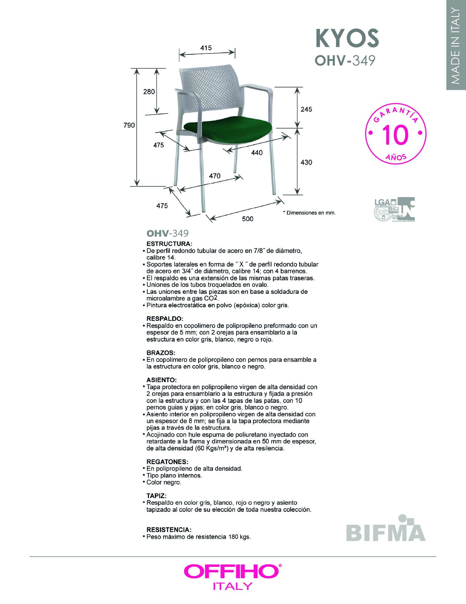 asiento: hule espuma de poliuretano inyectado flexible con densidad de 60 kgs/m3 con retardante a la flama y alta resiliencia.
