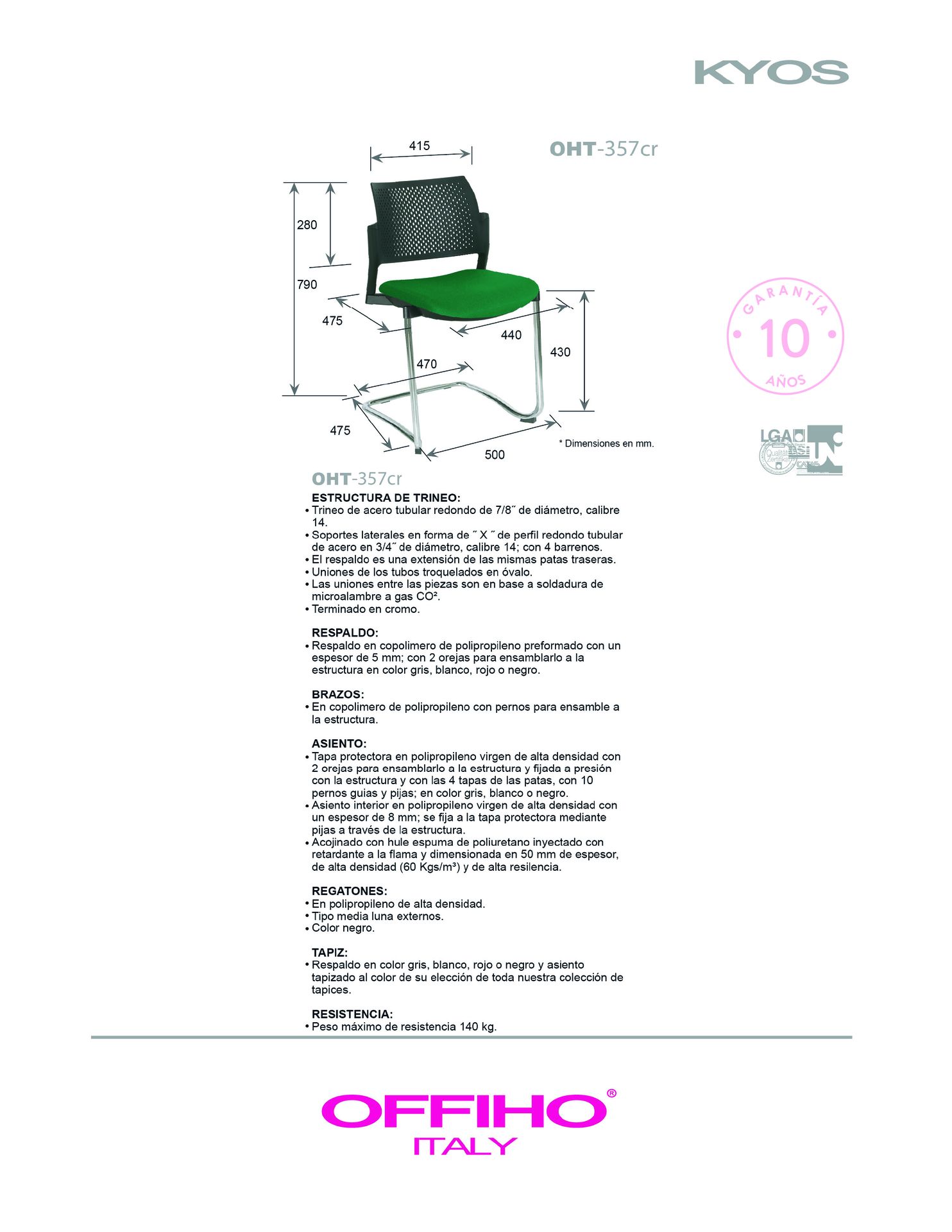 asiento: hule espuma de poliuretano inyectado flexible con densidad de 60 kgs/m3 con retardante a la flama y alta resiliencia.