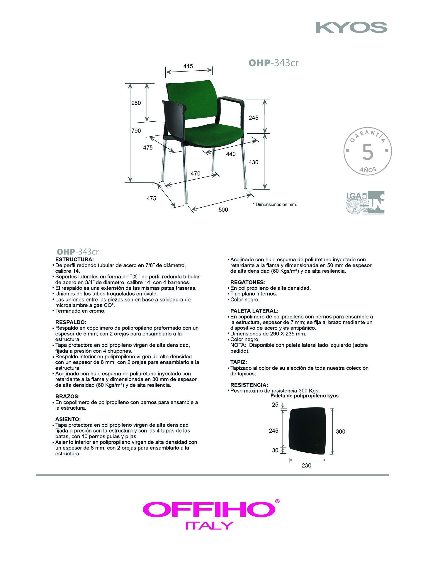 asiento y respaldo: hule espuma de poliuretano inyectado flexible con densidad de 60 kgs/m3 con retardante a la flama y alta resiliencia.