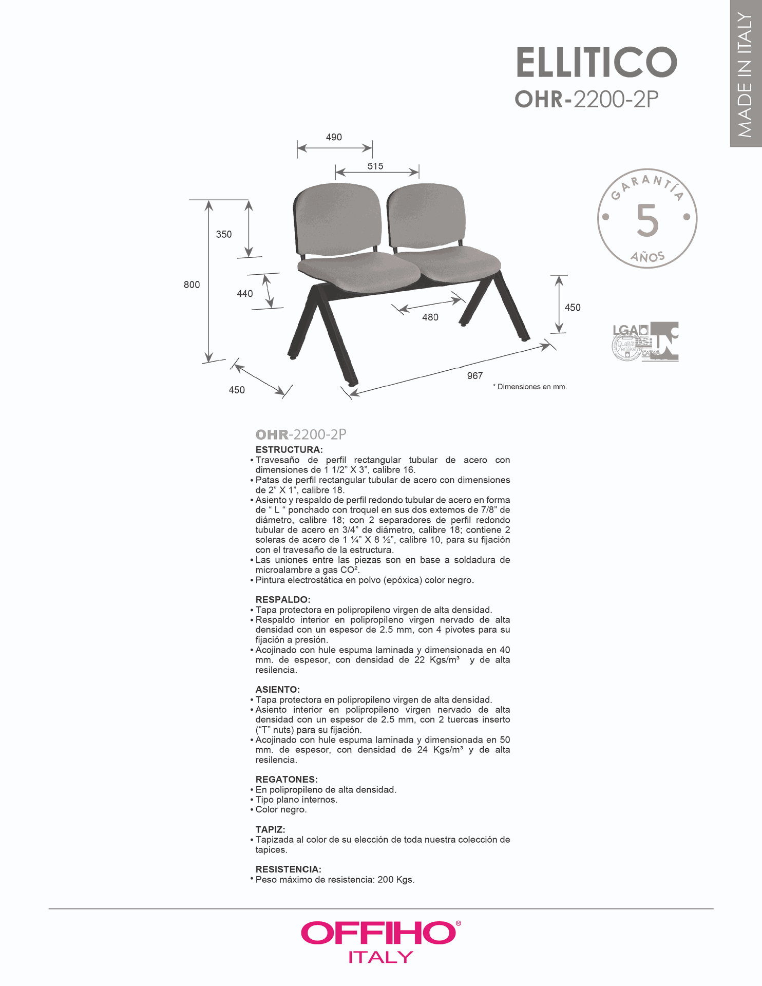 BANCA ELLITICO 2 PLAZAS ASIENTO Y RESPALDO TAPIZADO