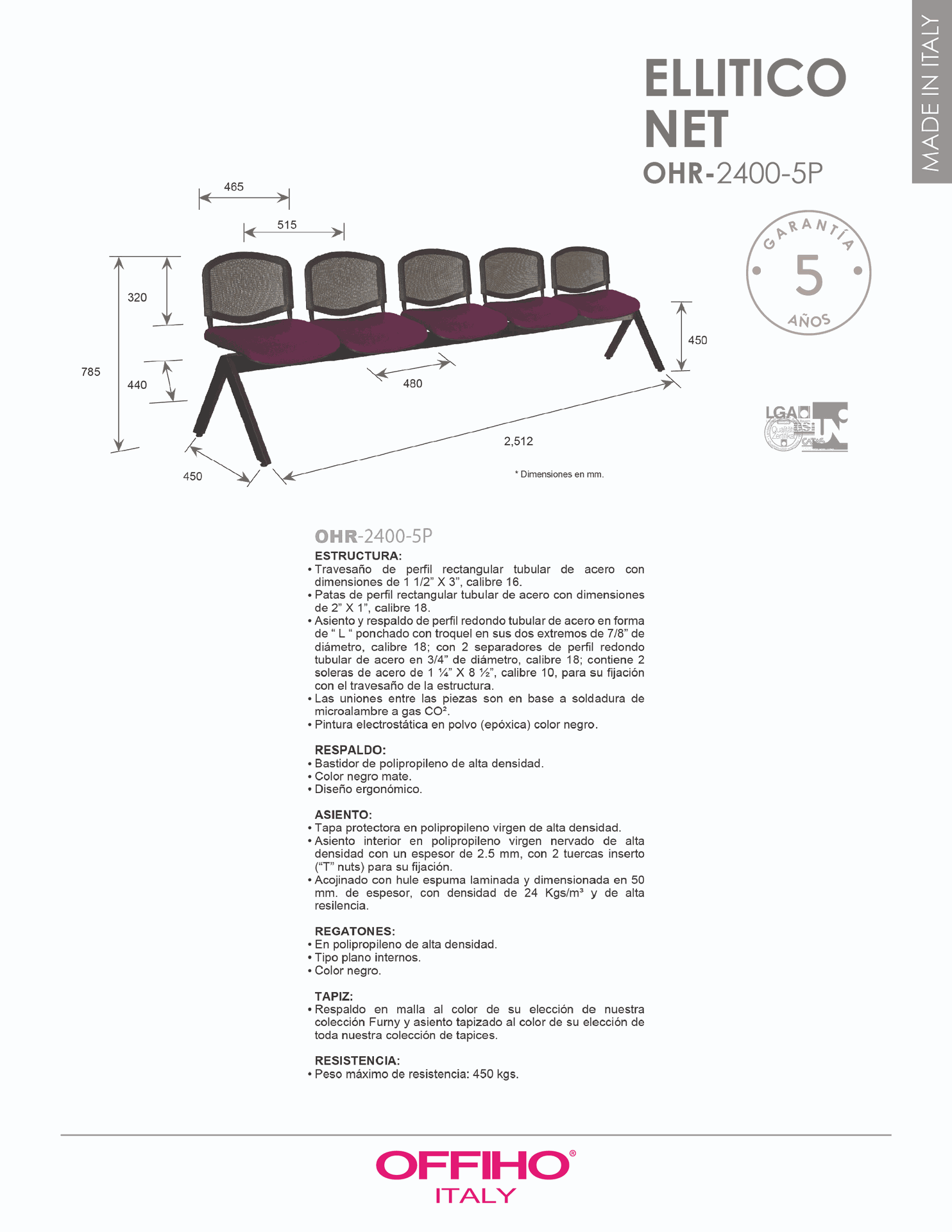 BANCA ELLITICO NET 5 PLAZAS ASIENTO TAPIZADO RESPALDO MALLA