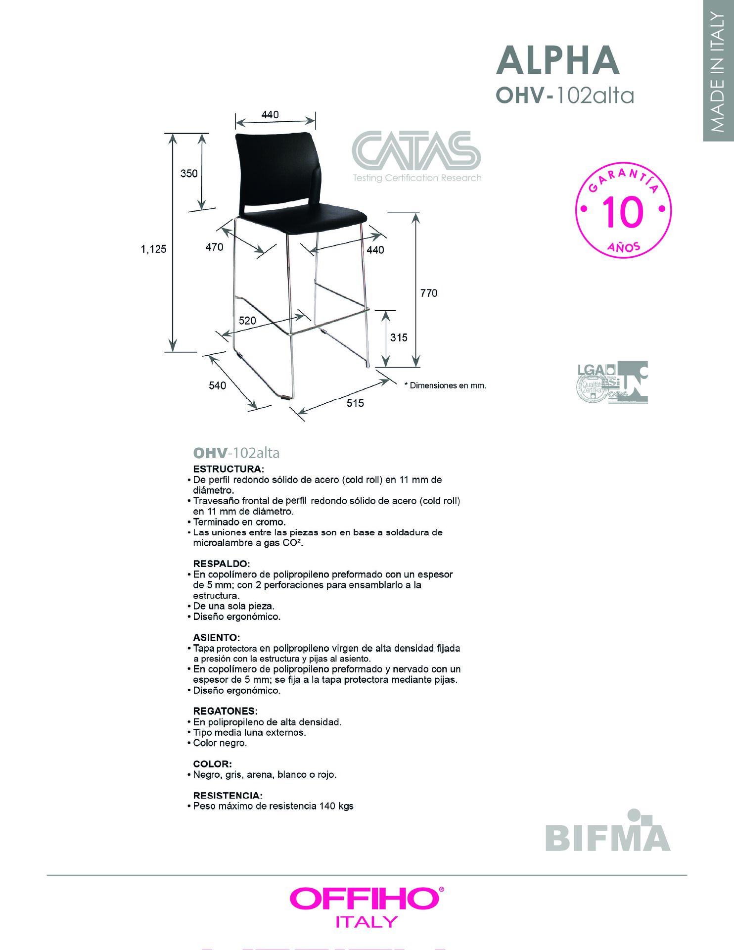 SILLA ALPHA ALTA POLIPROPILENO EXPUESTO