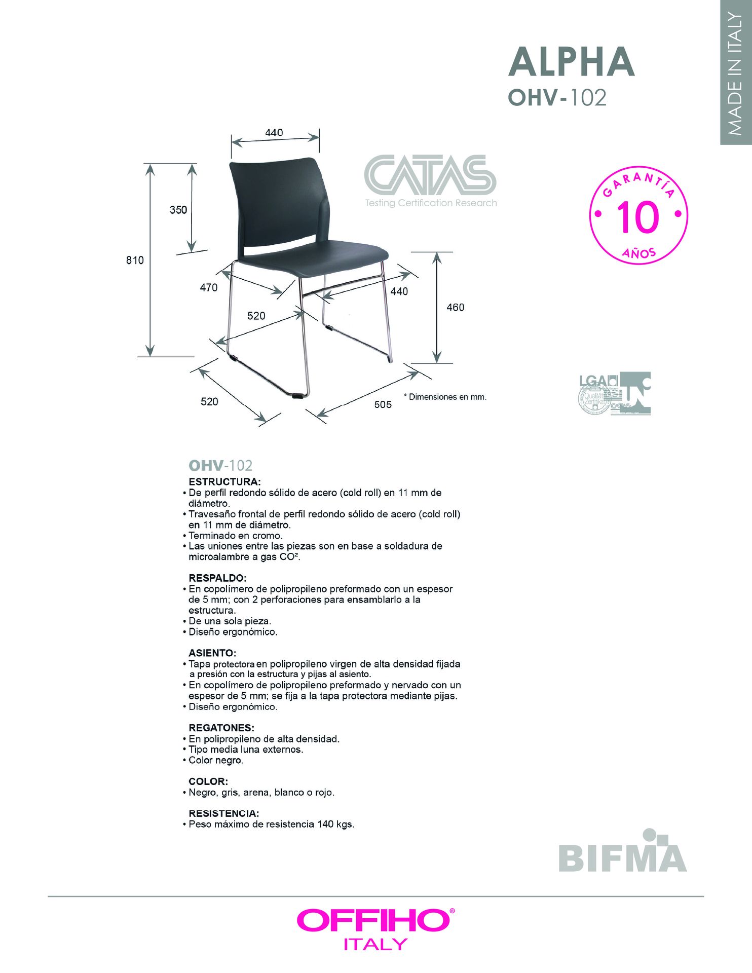 asiento y respaldo: en dos piezas en polipropileno de alta resistencia y duración.