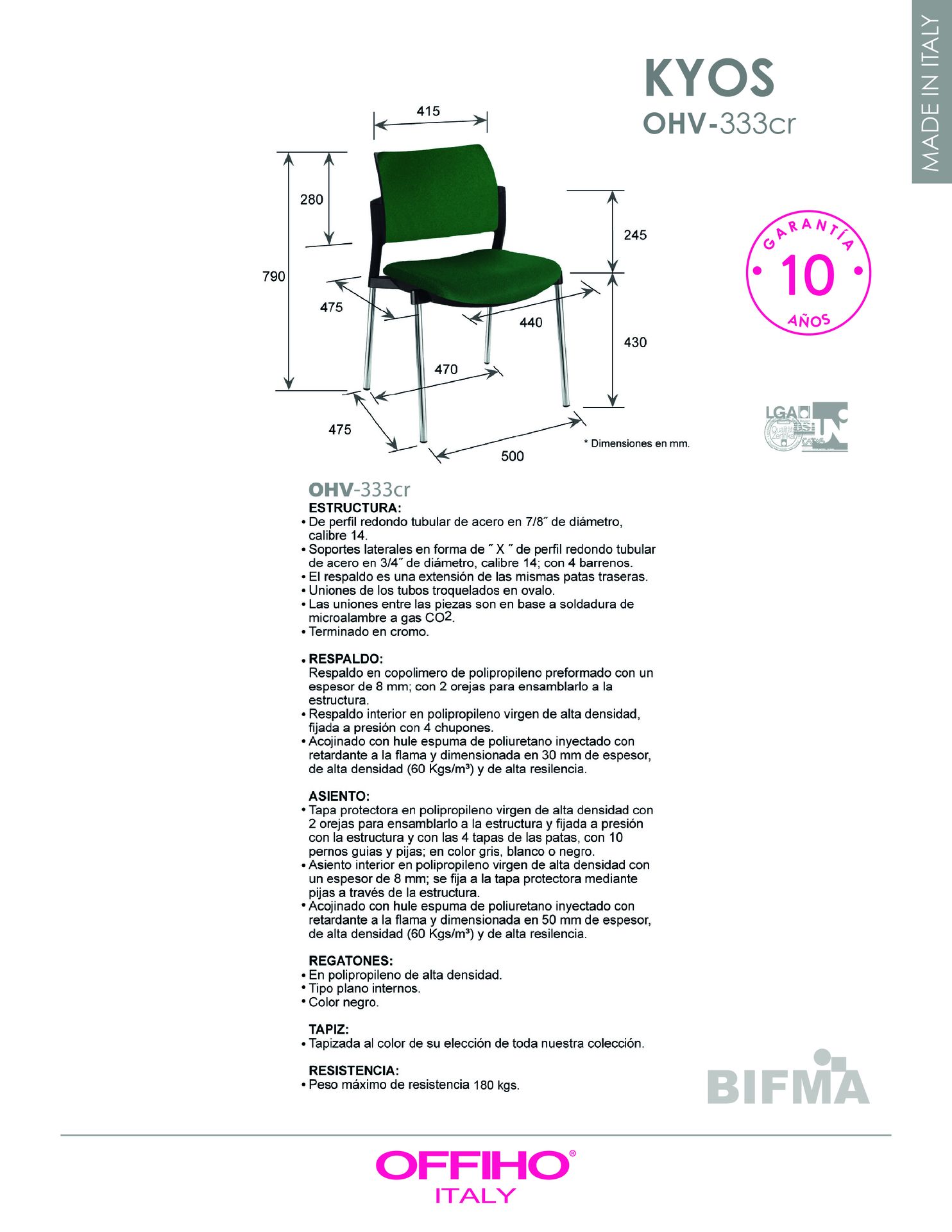 asiento y respaldo: hule espuma de poliuretano inyectado flexible con densidad de 60 kgs/m3 con retardante a la flama y alta resiliencia.