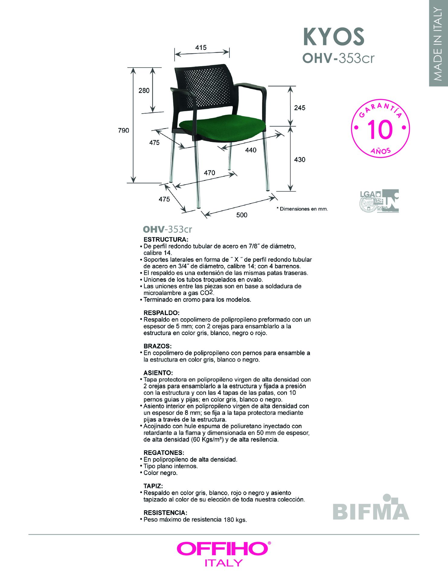 asiento: hule espuma de poliuretano inyectado flexible con densidad de 60 kgs/m3 con retardante a la flama y alta resiliencia.