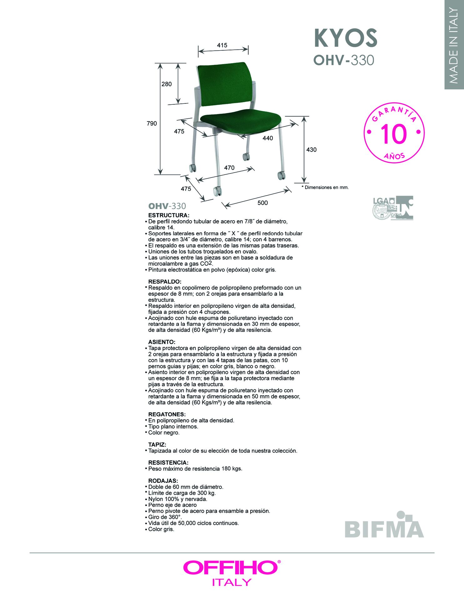 asiento y respaldo: hule espuma de poliuretano inyectado flexible con densidad de 60 kgs/m3 con retardante a la flama y alta resiliencia.