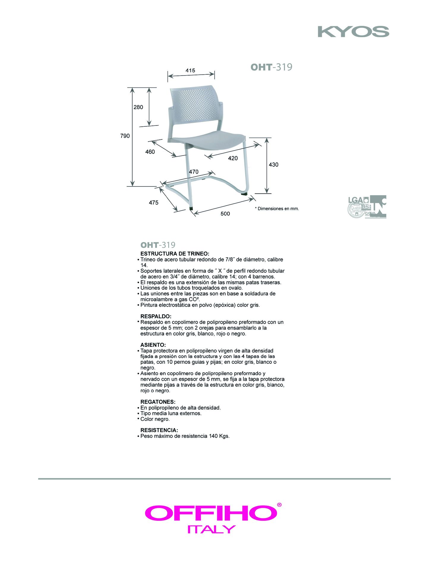asiento y respaldo: en polipropileno de alta resistencia y duración.