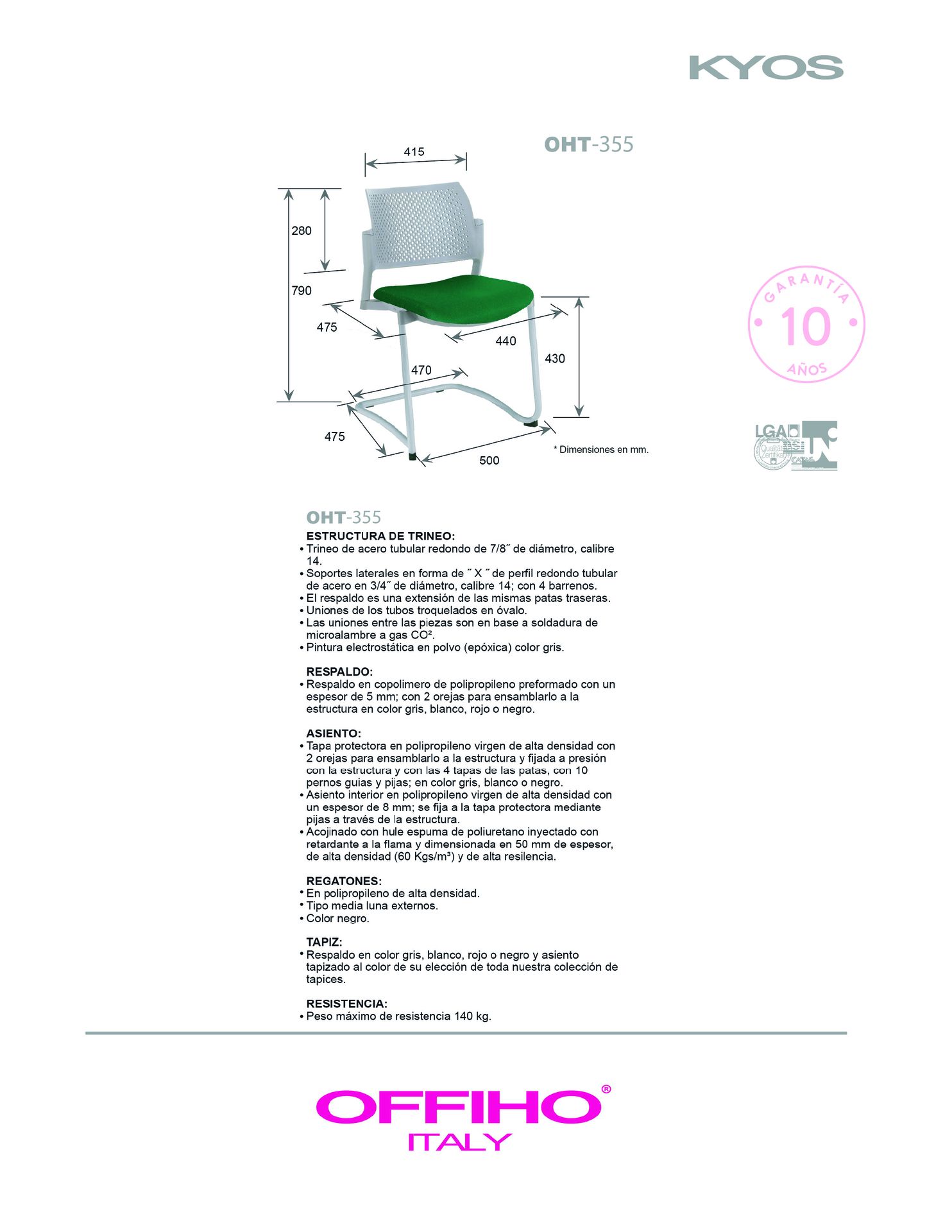 asiento: hule espuma de poliuretano inyectado flexible con densidad de 60 kgs/m3 con retardante a la flama y alta resiliencia.