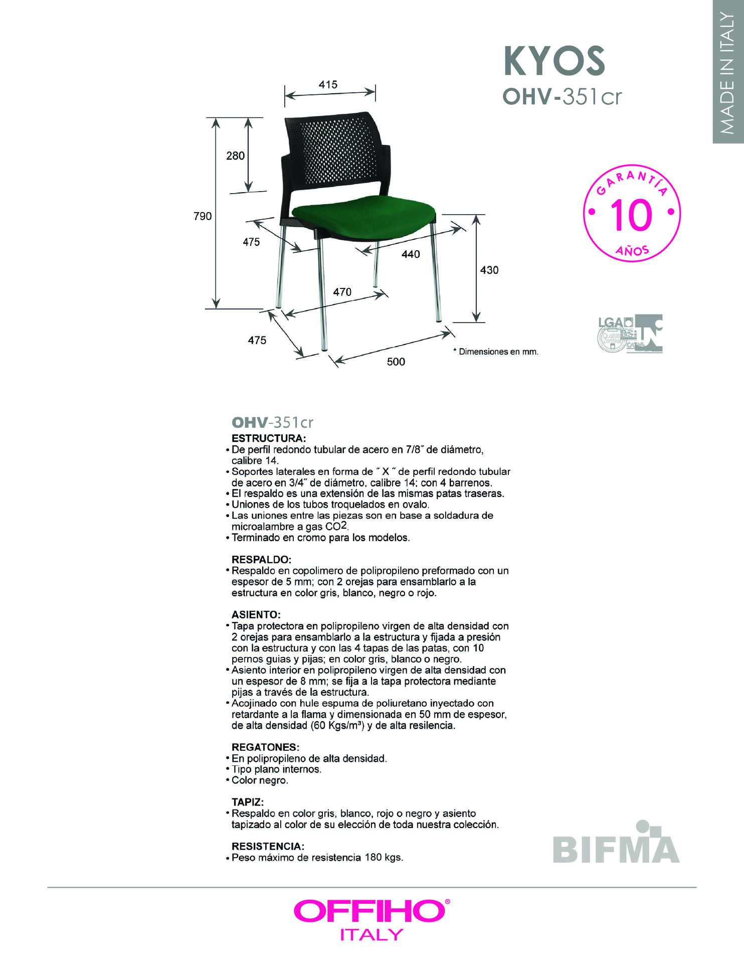 asiento: hule espuma de poliuretano inyectado flexible con densidad de 60 kgs/m3 con retardante a la flama y alta resiliencia.