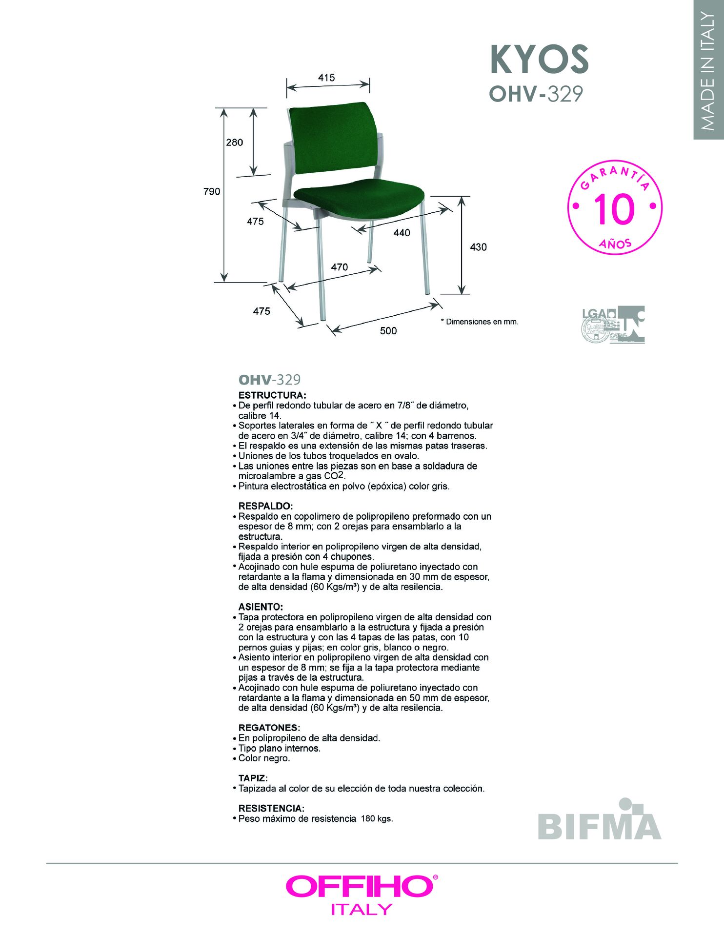 asiento y respaldo: hule espuma de poliuretano inyectado flexible con densidad de 60 kgs/m3 con retardante a la flama y alta resiliencia.