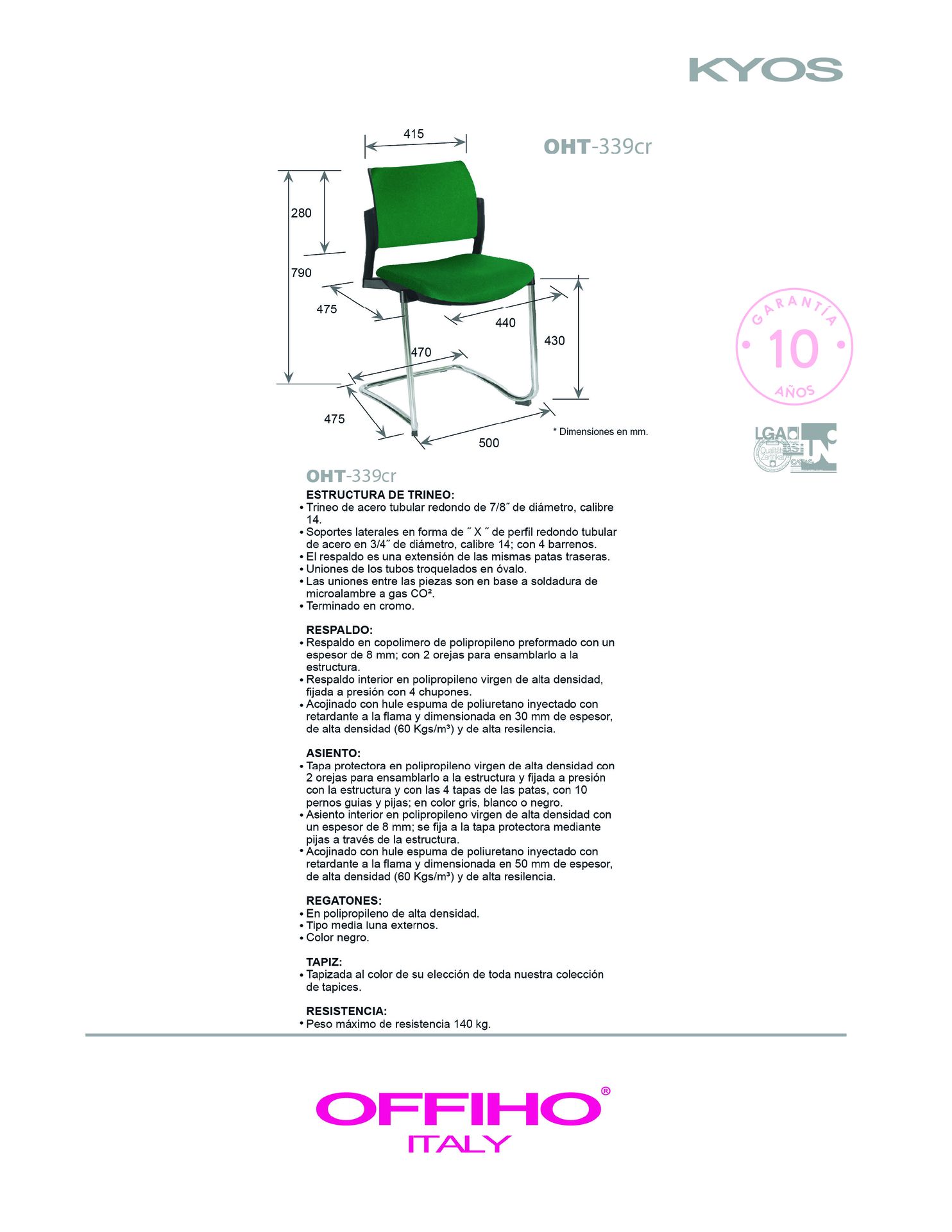 asiento y respaldo: hule espuma de poliuretano inyectado flexible con densidad de 60 kgs/m3 con retardante a la flama y alta resiliencia.