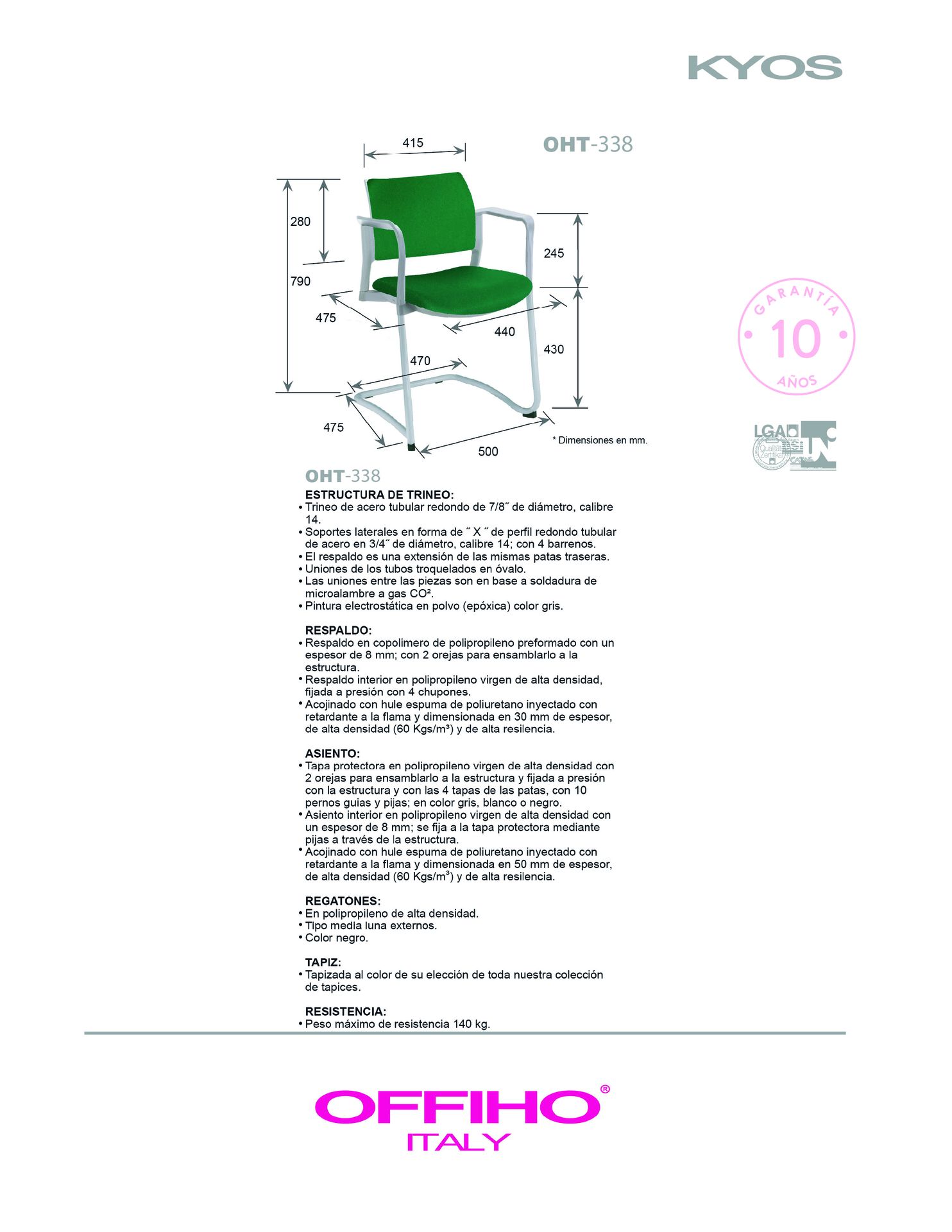 asiento y respaldo: hule espuma de poliuretano inyectado flexible con densidad de 60 kgs/m3 con retardante a la flama y alta resiliencia.