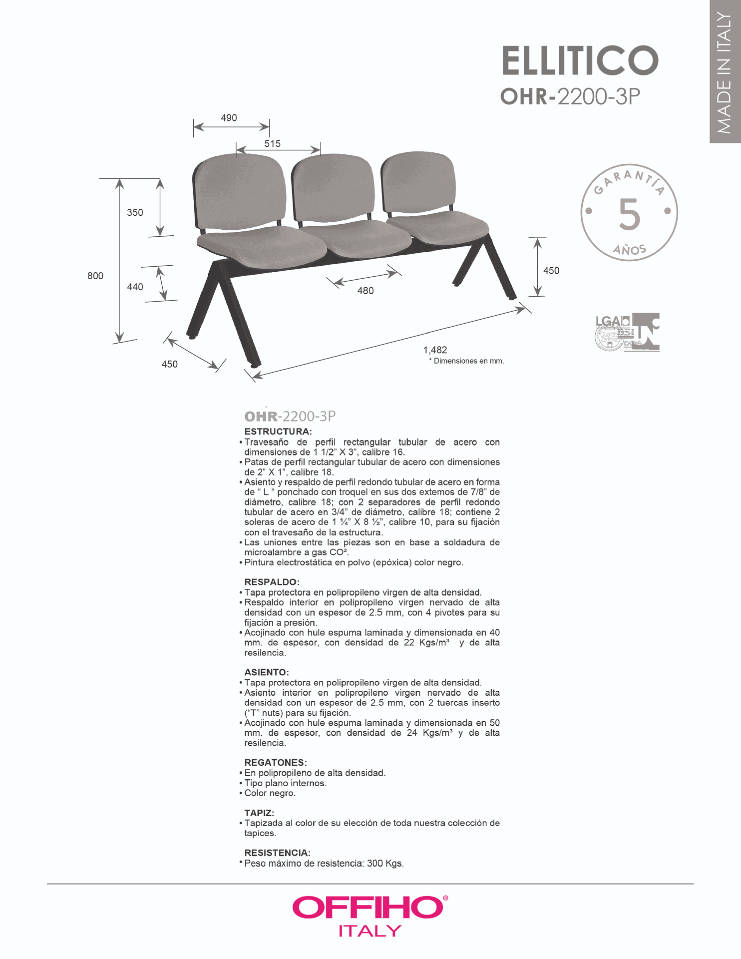 BANCA ELLITICO 3 PLAZAS ASIENTO Y RESPALDO TAPIZADO