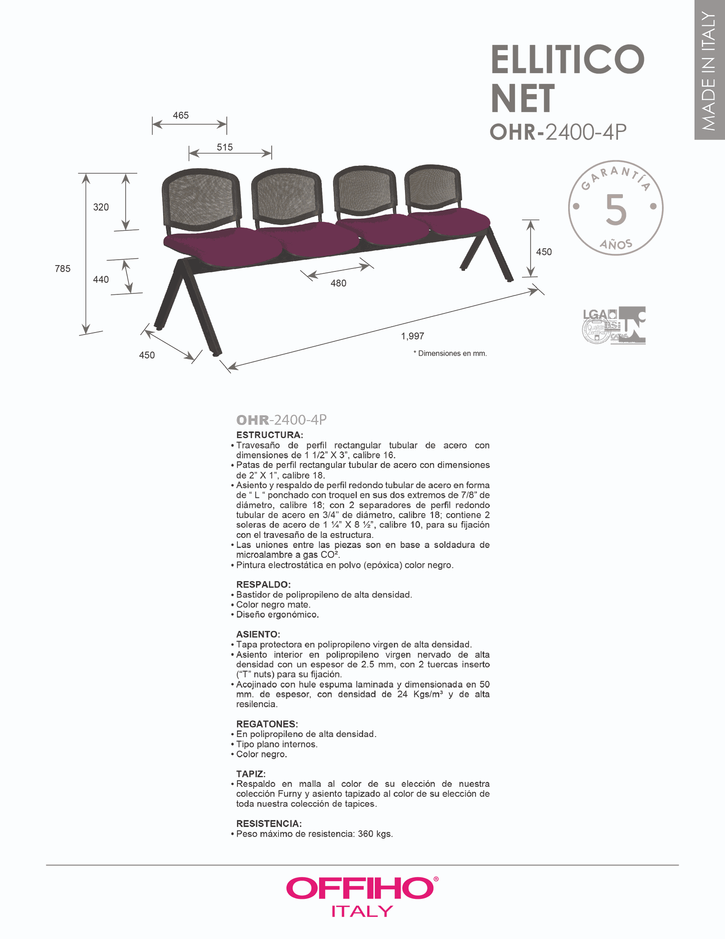 BANCA ELLITICO NET 4 PLAZAS ASIENTO TAPIZADO RESPALDO MALLA