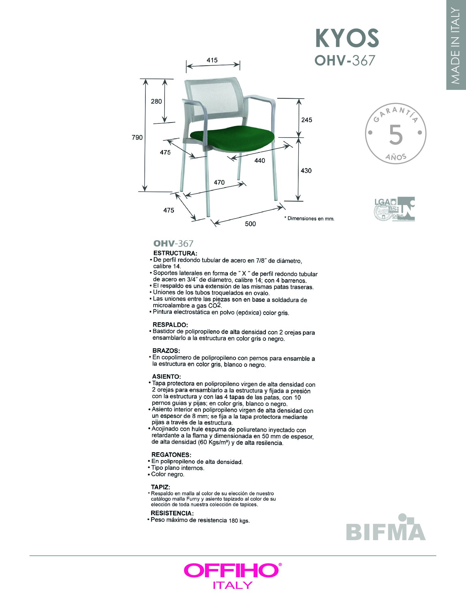 asiento: hule espuma de poliuretano inyectado flexible con densidad de 60 kgs/m3 con retardante a la flama y alta resiliencia.