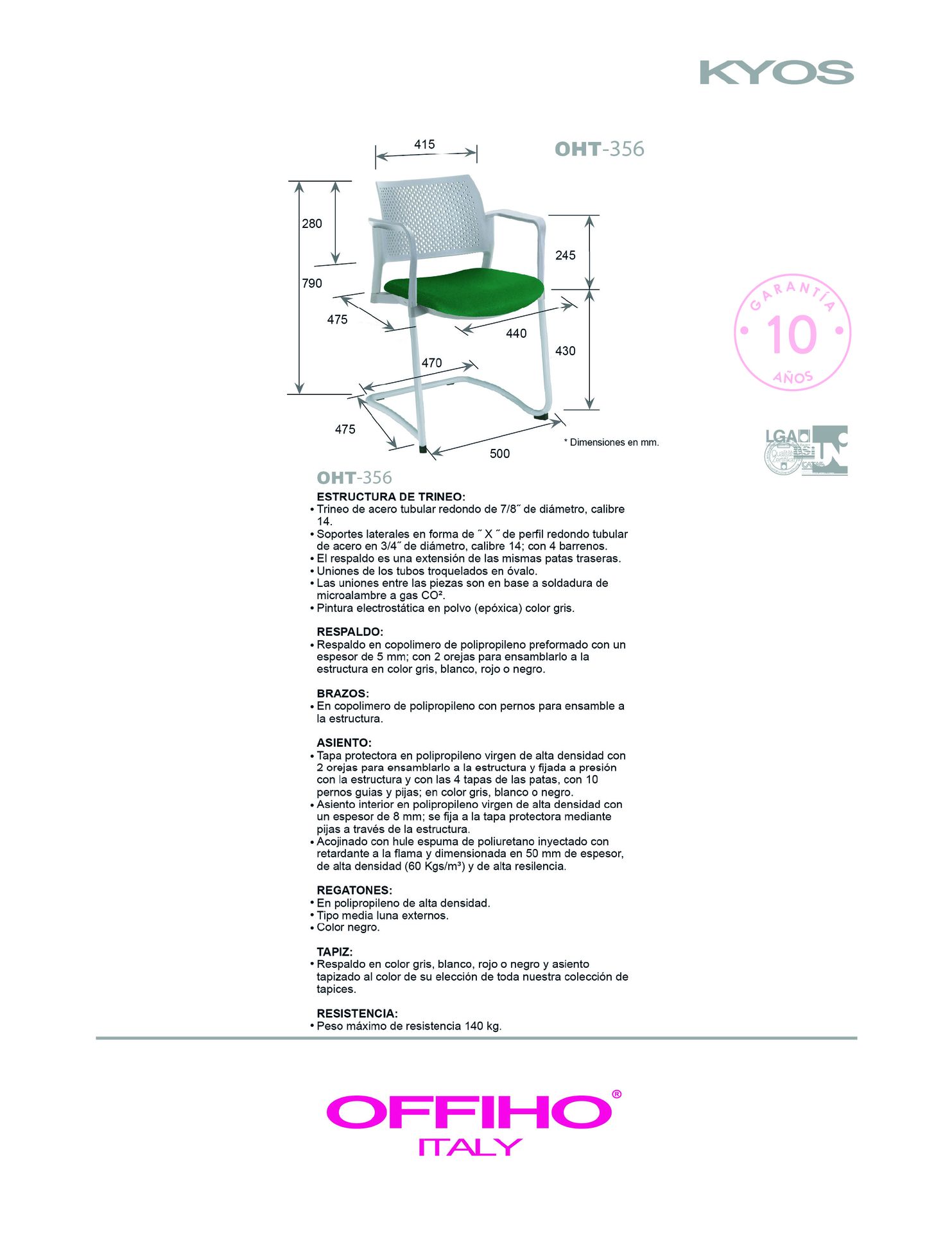 asiento: hule espuma de poliuretano inyectado flexible con densidad de 60 kgs/m3 con retardante a la flama y alta resiliencia.