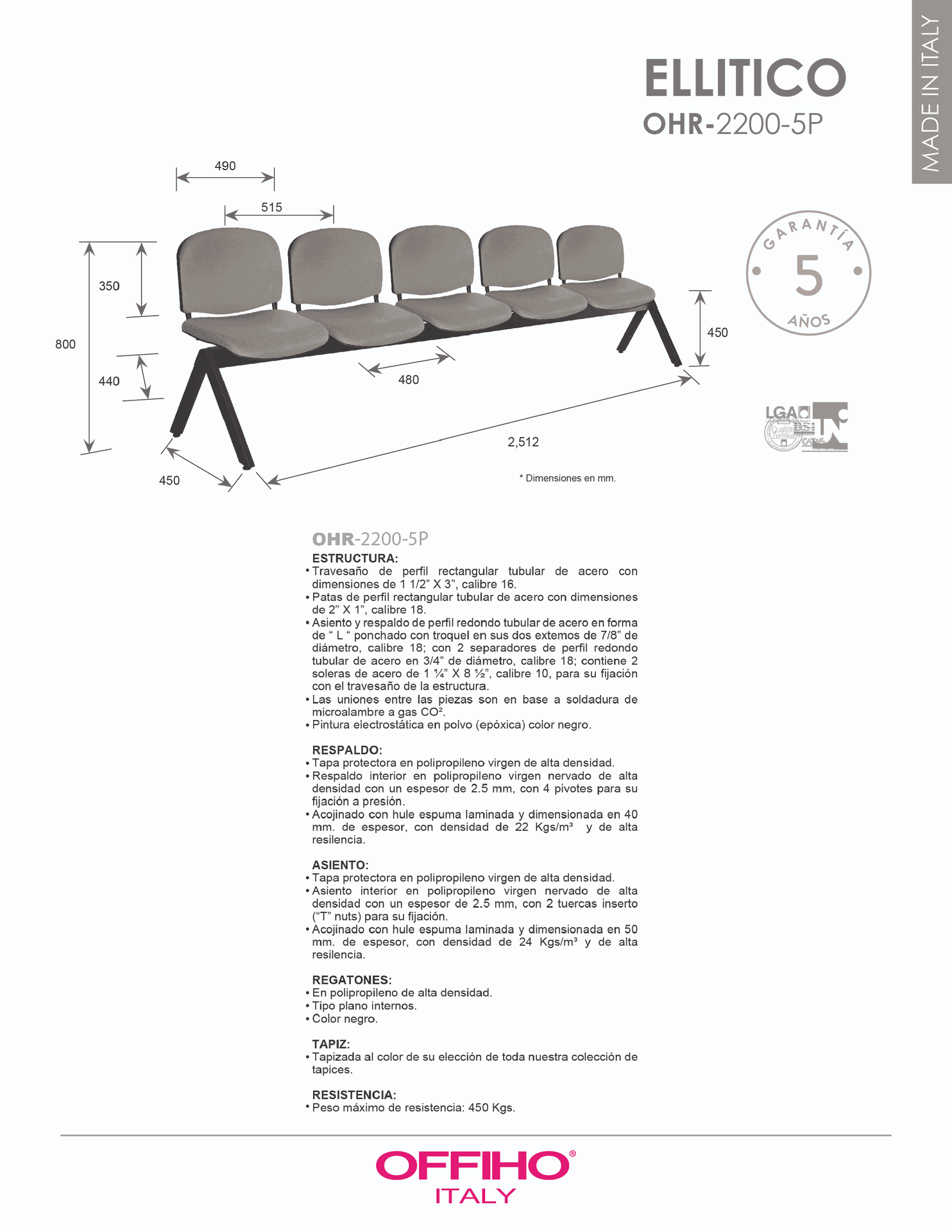 BANCA ELLITICO 5 PLAZAS ASIENTO Y RESPALDO TAPIZADO